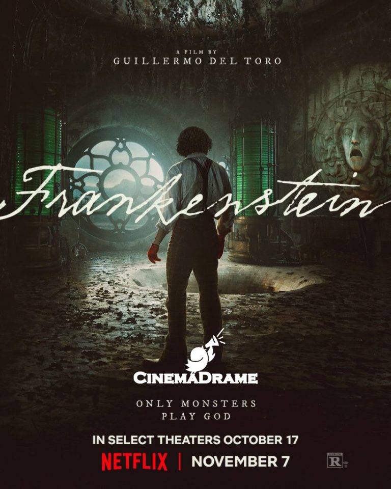 According to CinemaDrame News Agency, new posters for Guillermo del Toro’s Frankenstein have been revealed, featuring the tagline “Only Monsters Play God.” The handwritten typography and the cold, inhuman imagery hint at the tone of del Toro’s adaptation of the classic Mary Shelley tale. The film will premiere next week at the Venice Film Festival before screening at Toronto and Telluride.