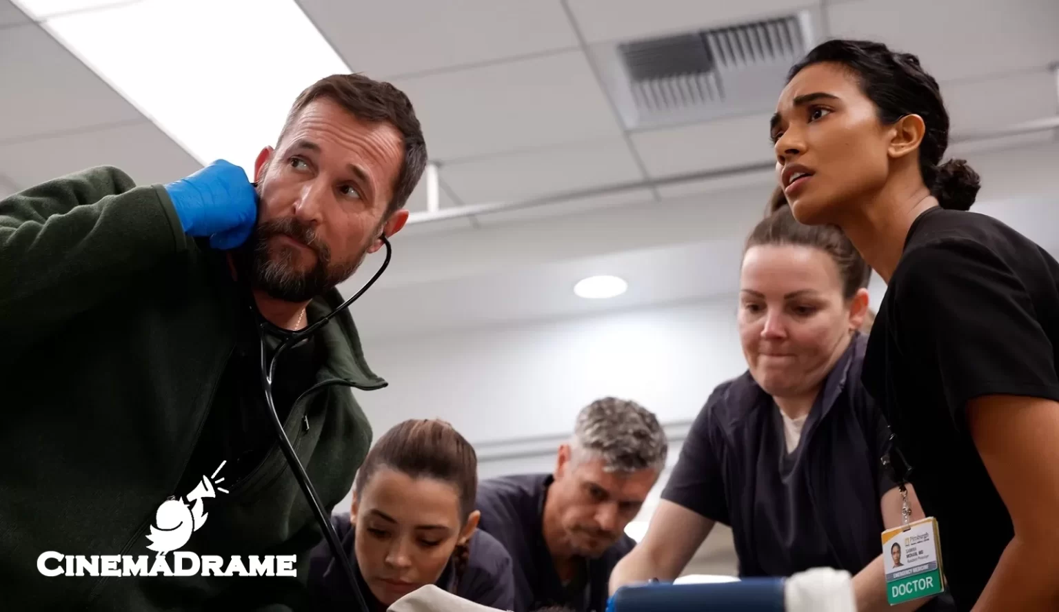 Each episode of the series, written by R. Scott Gemmill, depicts one hour of Dr. Rabi’s fifteen-hour shift as head of the ER at the fictional Pittsburgh hospital. The season one cast included Noah Wyle, Tracie Ifeachor, Patrick Ball, Katherine LaNasa, Supriya Ganesh, Fiona Dourif, Taylor Dearden, Isa Briones, Garan Howell, and Shabana Azmi.
